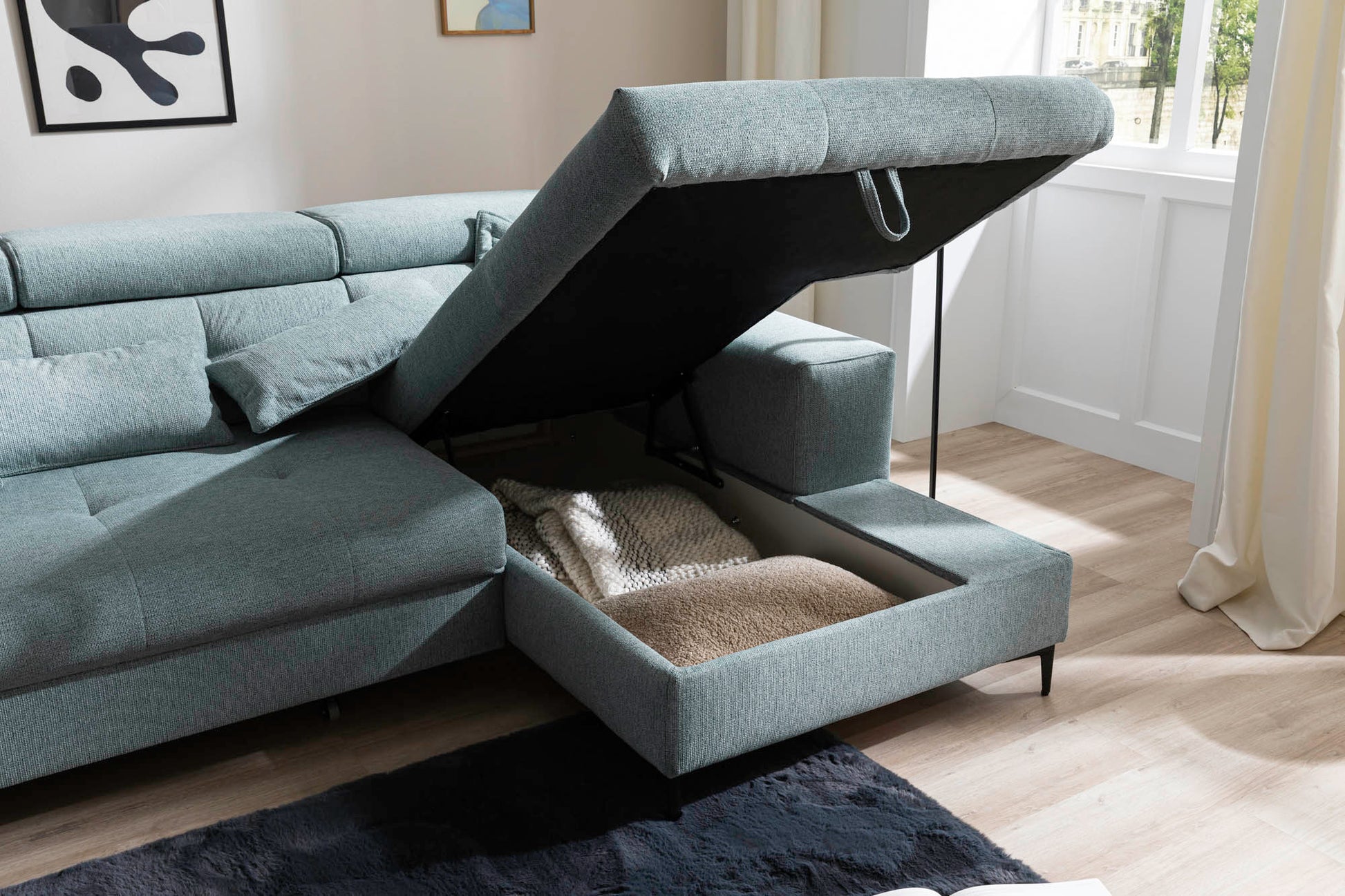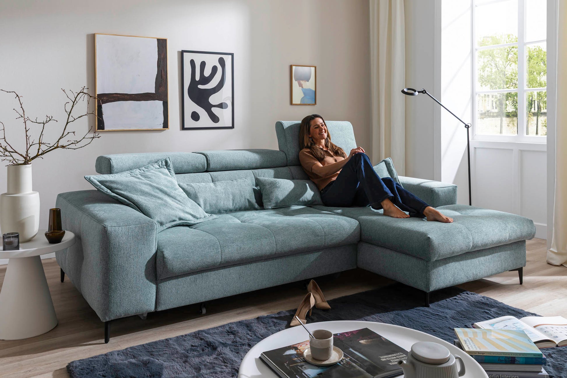 Die Kuneapel bietet hohen Sitzkomfort und praktische Funktionen für entspanntes Wohnen. Verstellbare Kopfteile ermöglichen eine individuelle Anpassung der Sitzposition, während der integrierte Bettkasten zusätzlichen Stauraum schafft. Der elektrische Sitzvorzug erweitert die Sitzfläche auf Knopfdruck und sorgt für noch mehr Bequemlichkeit.